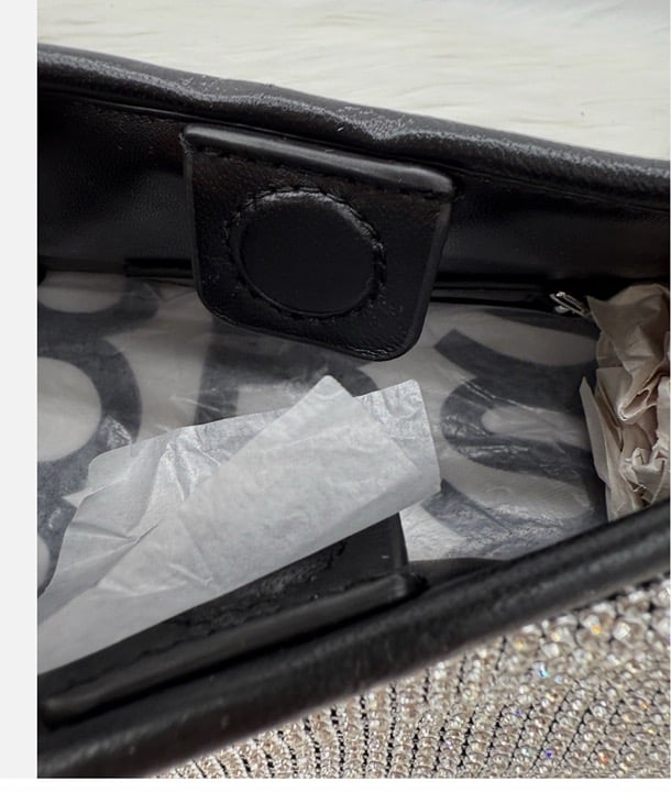 Marc Jacobs "The Min Sack" top handle bag in aluminum, phifertex® vinyl mesh, and rhinestones
